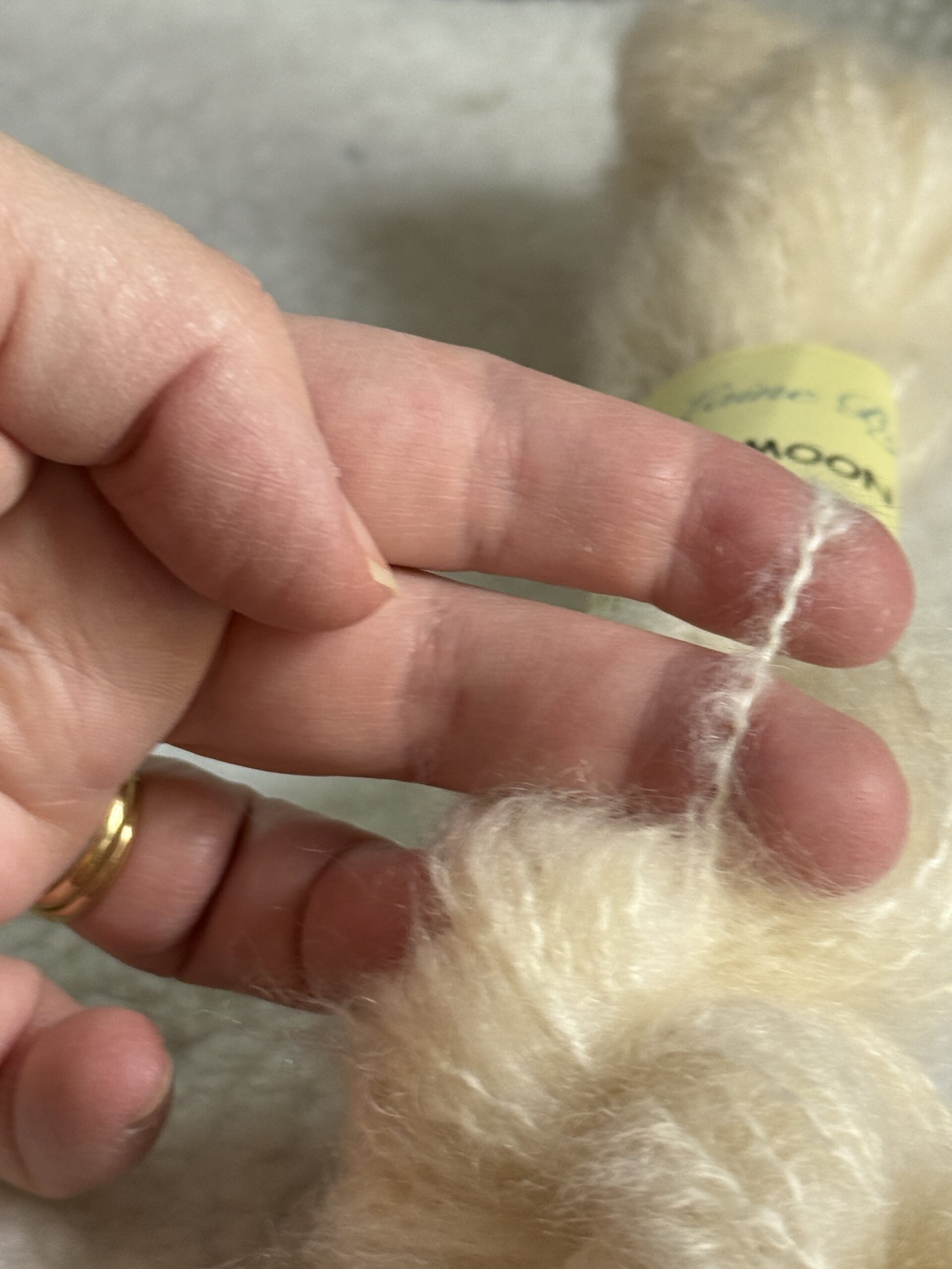 Moon is a French mohair, sourced from Angora goats. The shearing is done gently twice a year by the farmer. Sorting, washing, carding, and combing are carried out in Northern Italy.