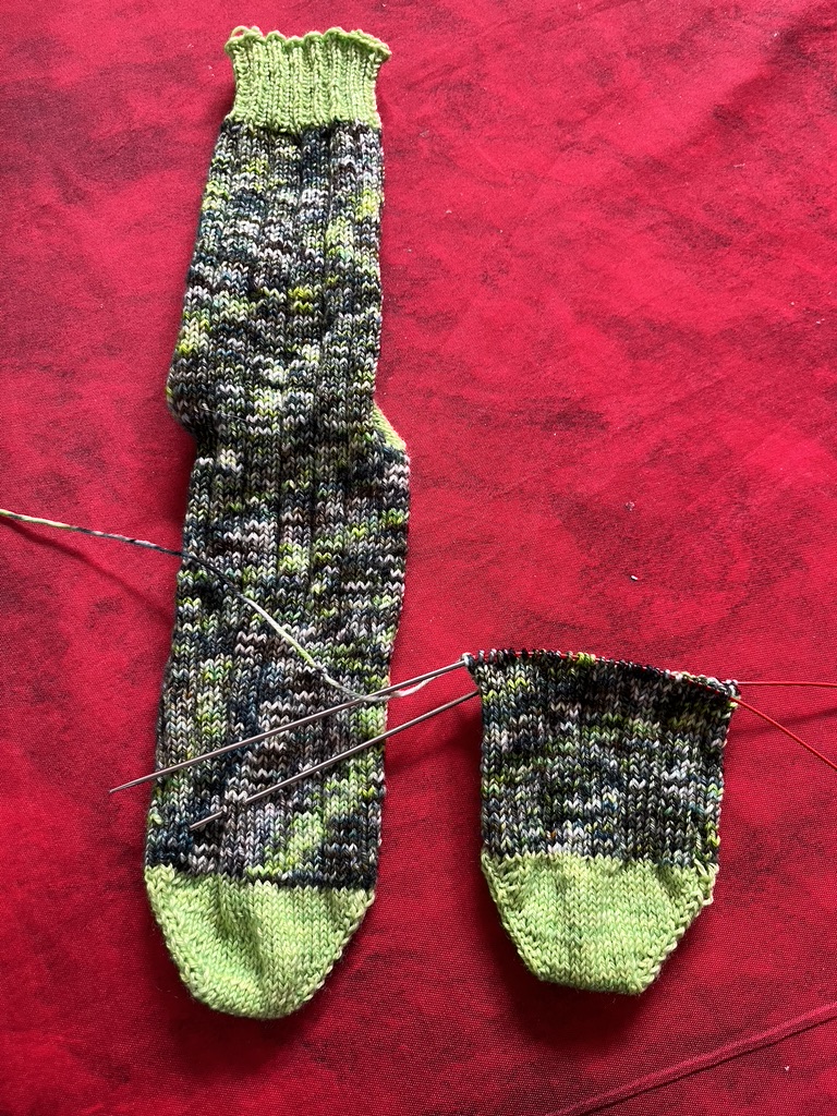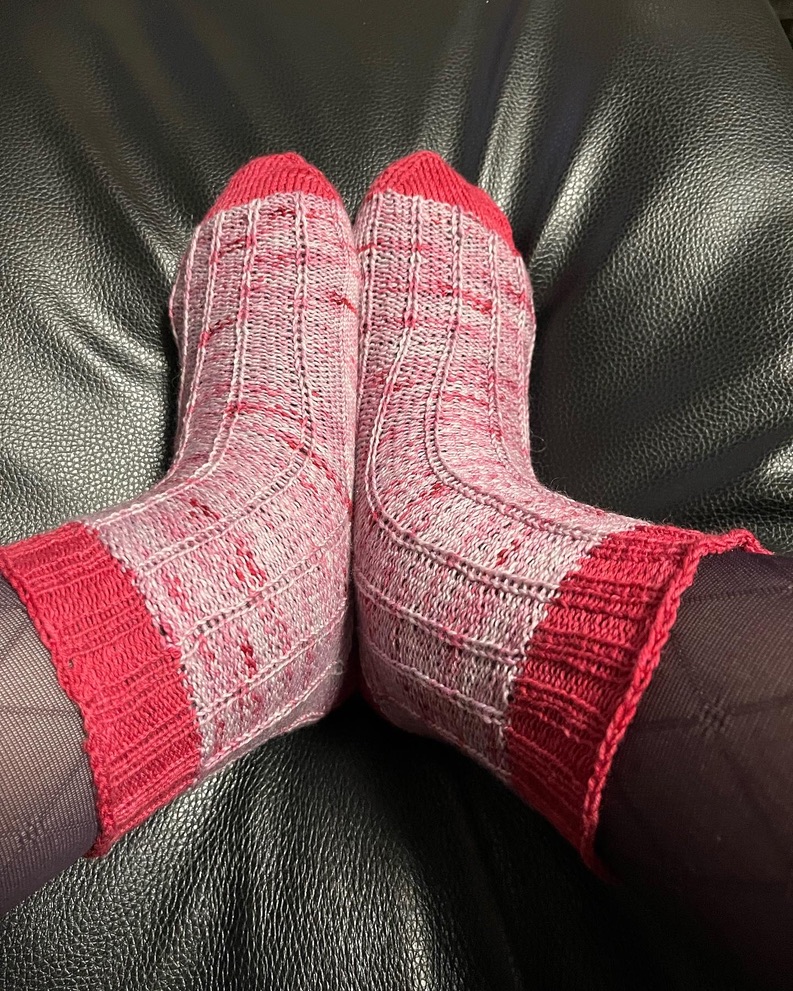 J’ai voulu un modèle de chaussettes accessible aux débutants pour le motif , avec un talon se tricotant en rangs raccourcis. Deux modèles sur la même base sont présents dans les explications.