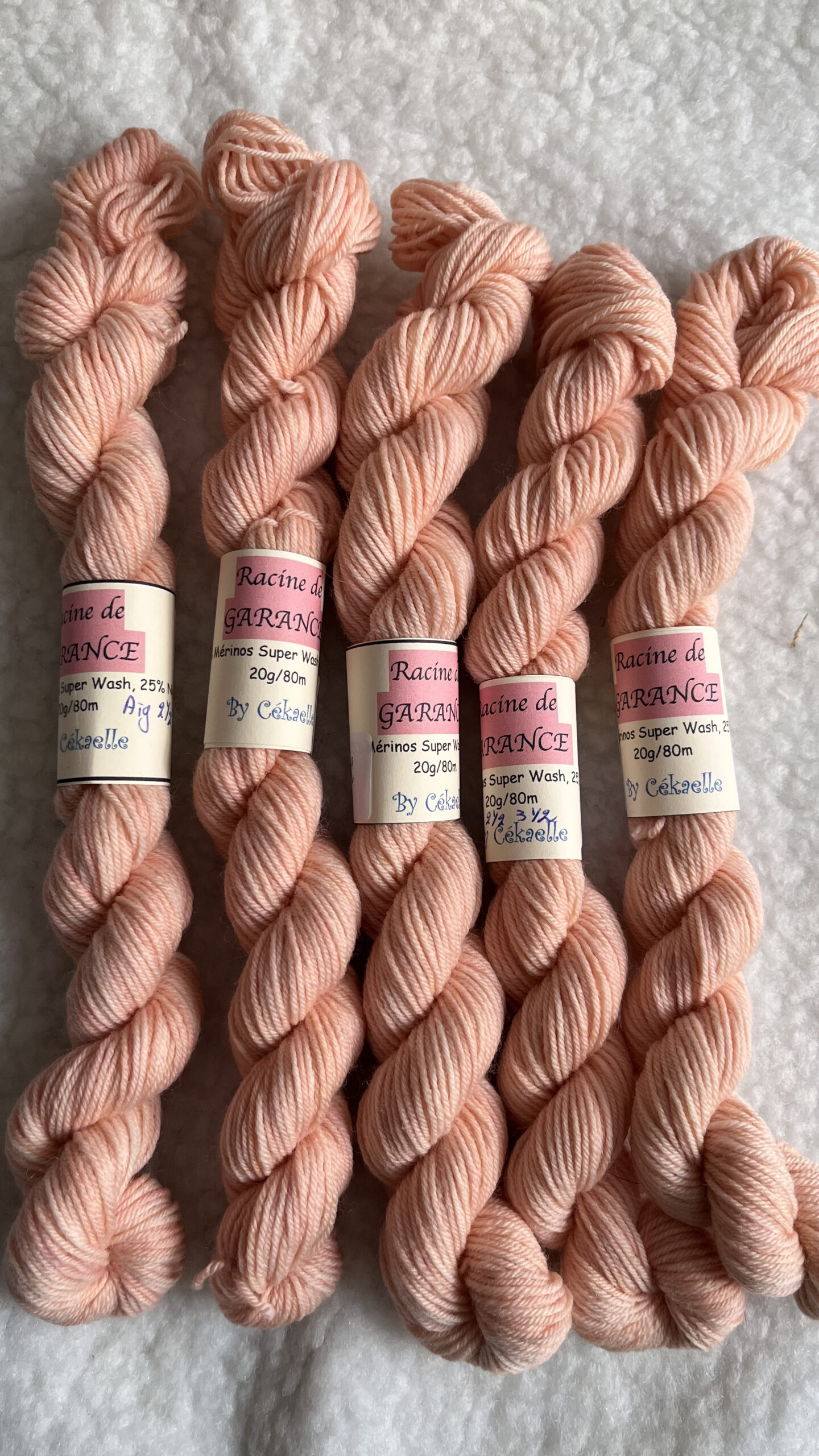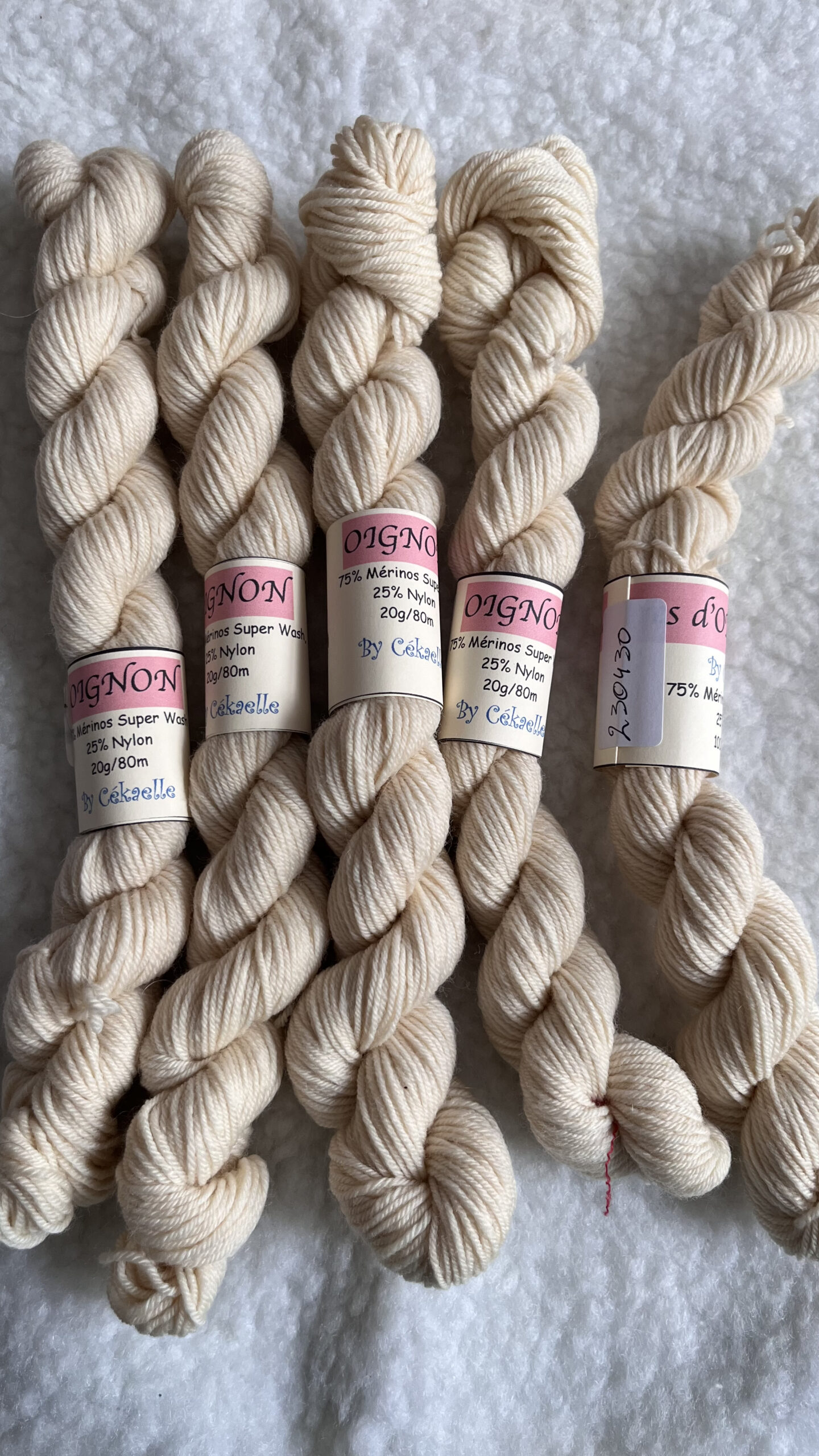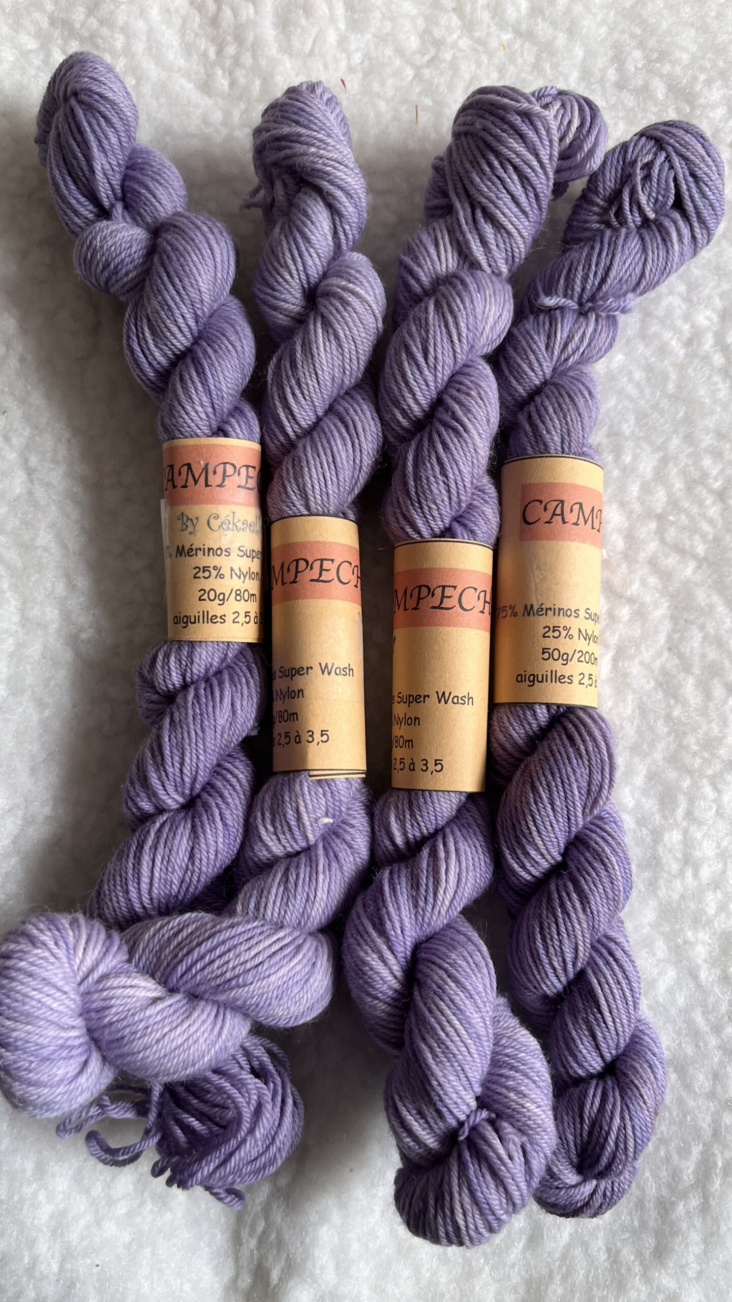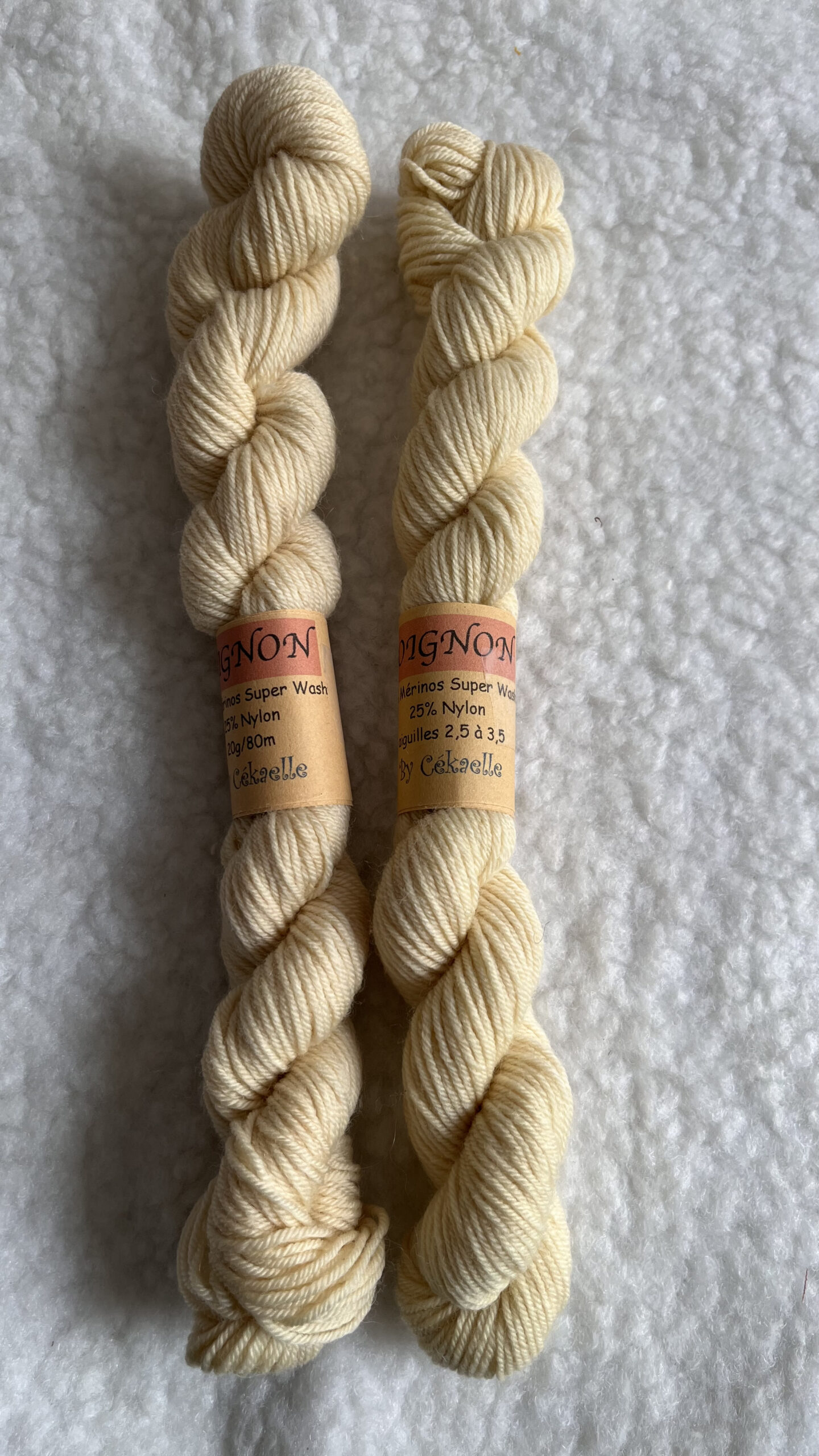 La présence de Nylon dans cette fibre douce permet de tricoter tous les ouvrages notamment les chaussettes et la layette. Le lavage en machine cycle laine est possible bien que je conseille toujours un lavage à la main avec lessive adaptée à la laine. Je propose 3 longueurs d’écheveaux : 100g pour environs 400m, 50g pour environs 200m et 20g pour environ 80m.