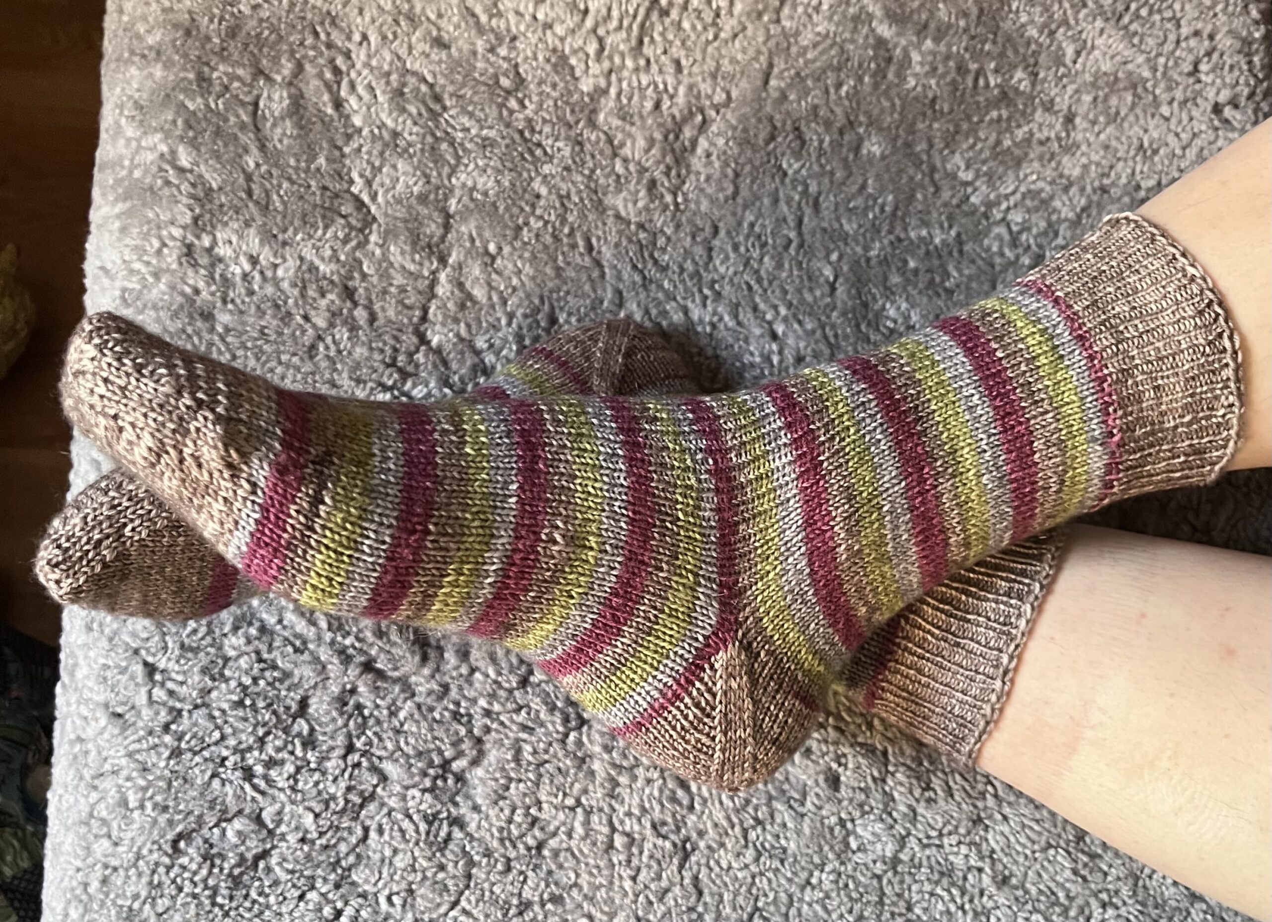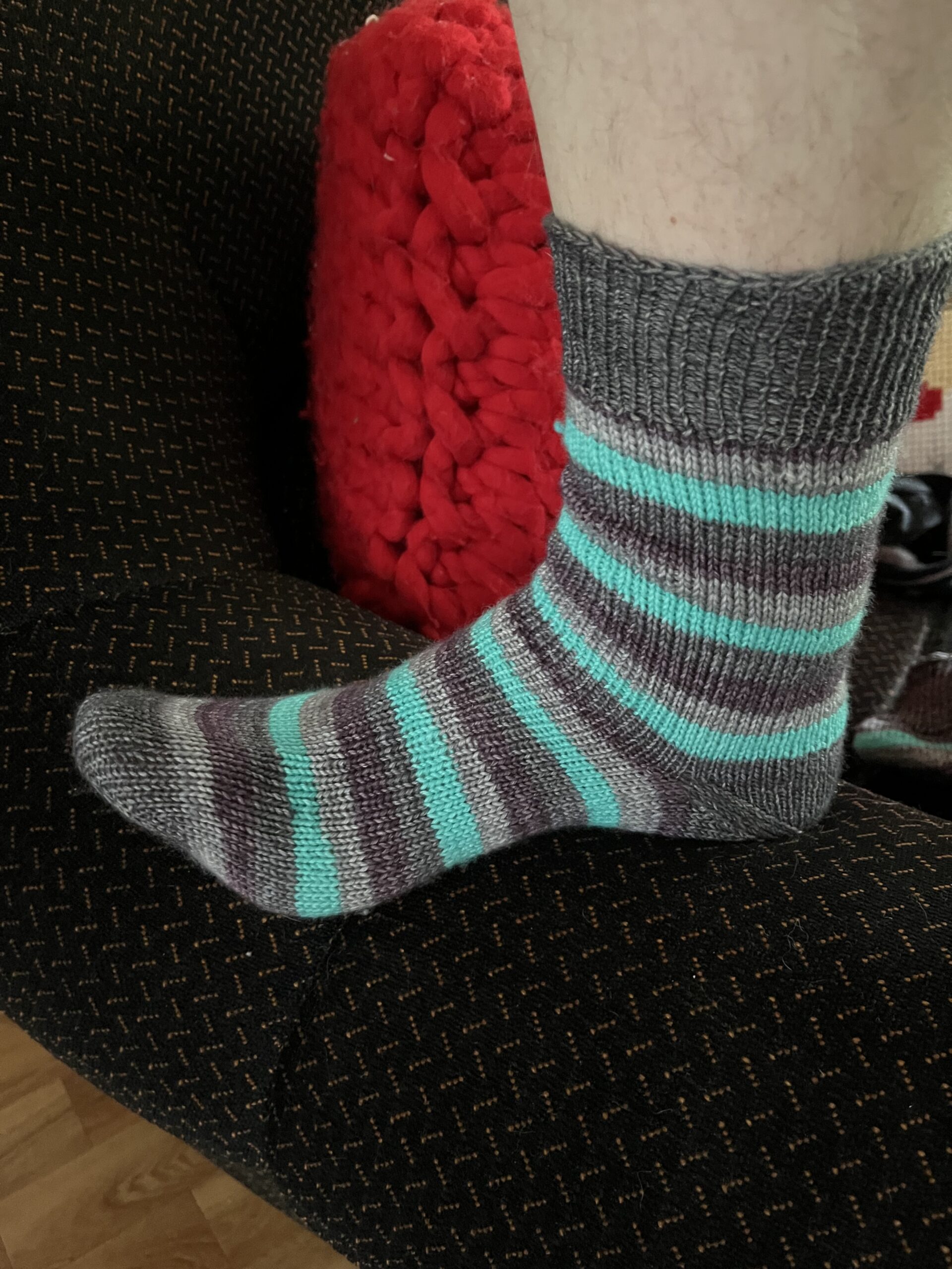 Wyjaśniam krok po kroku, jak zrobić skarpetę „później”. Jest to kwestia, aby długa rurka rozpoczyna i kończąca się punktem, a następnie sprytnie cięcie w celu rozdzielenia dwóch skarpet i utworzenia pięty. W ten sposób użyjesz całego motka (50 g + 20 g lub 100 g)